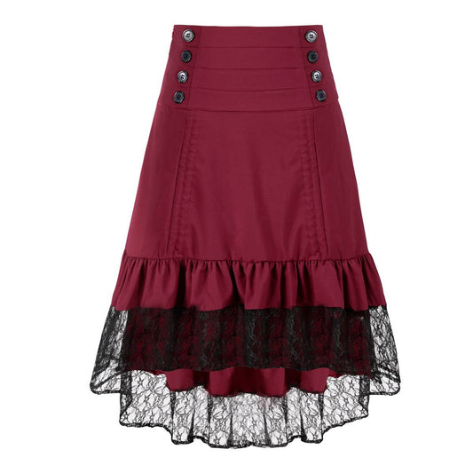 Victorian Gothic High-Waisted Skirt Lace Button Pleated Renaissance Pirate Dress